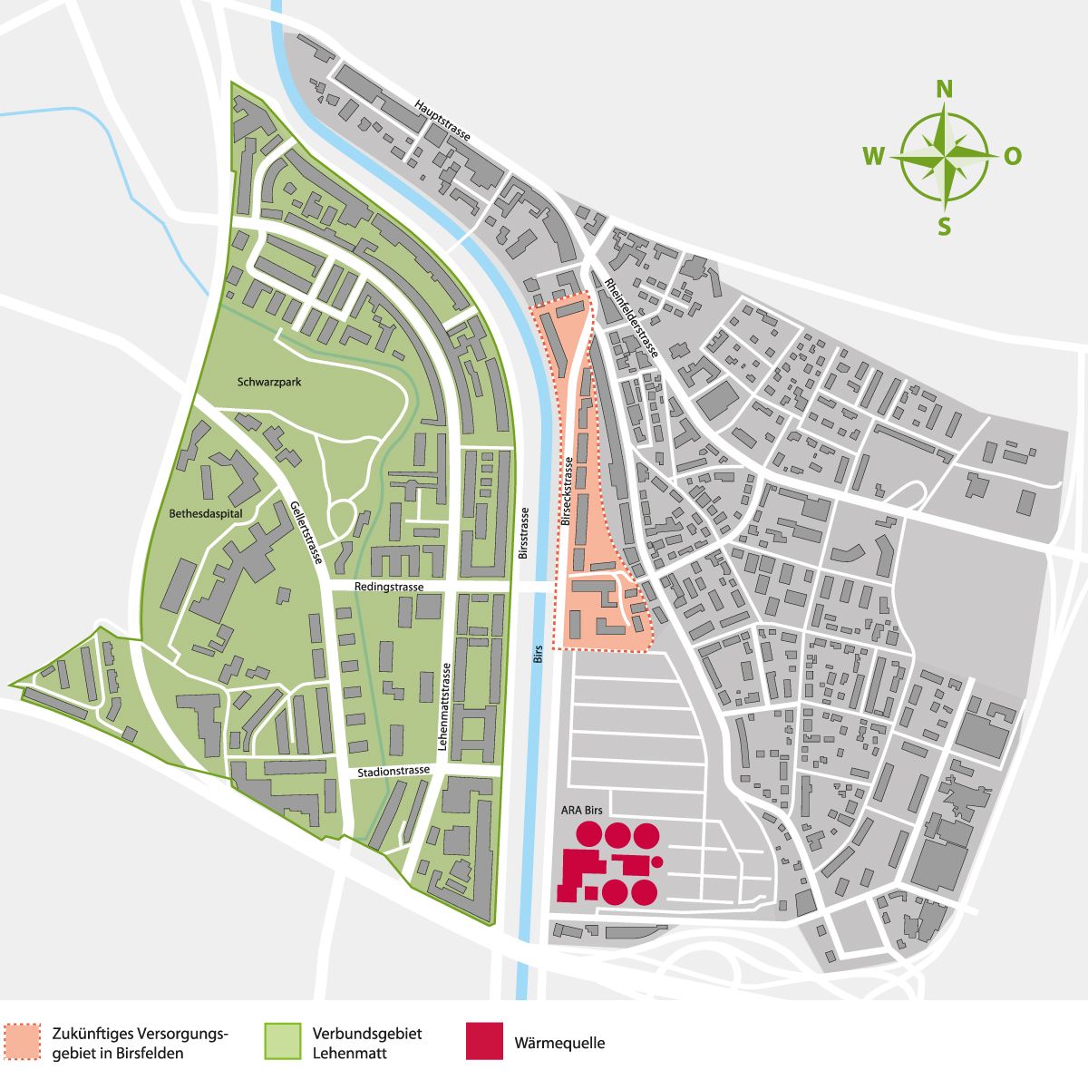 Das vorgesehene Versorgungsgebiet umfasst ungefähr 360 Liegenschaften. Rund 2500 Haushalte sollen im Lehenmattquartier im Zielausbau des Verbunds mit erneuerbarer Wärme versorgt werden.
